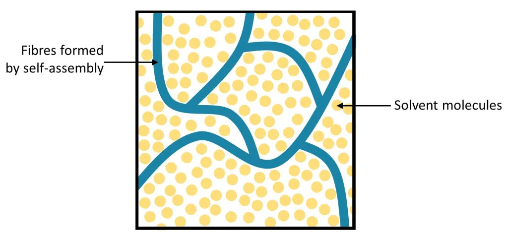 Na pograniczu ciała stałego i cieczy znajduje się również galaretka, która jest koloidem, czyli niejednorodną mieszaniną dwóch substancji. Jedna z tych substancji tworzy włóknistą strukturę sieciową, która więzi cząsteczki w fazie płynnej. Sieciowa struktura utrzymuje kształt galaretki (sprężystość kształtu), ale stosunkowo łatwo go zmienić pod wpływem większych sił (struktura łatwo się rozrywa).