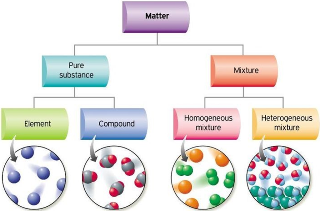 Materia składa się z substancji stanowiących czyste pierwiastki lub związki chemiczne różnych pierwiastków, a także z mieszanin różnych substancji.